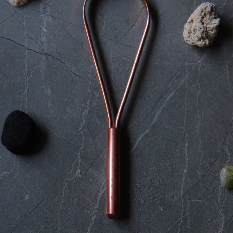 Properties Tongue scraper or cleaner made of copper. Copper tongue cleaners don’t leach microplastics, BPA, BPS, or phthalates into your body and are safe to use, unlike plastic tongue cleaners. Tongue cleaners help you maintain good oral hygiene, health and freshness of breath. Materials Copper (12 gauge thickness) Dimensions 14 cm length 3.5 cm curve…